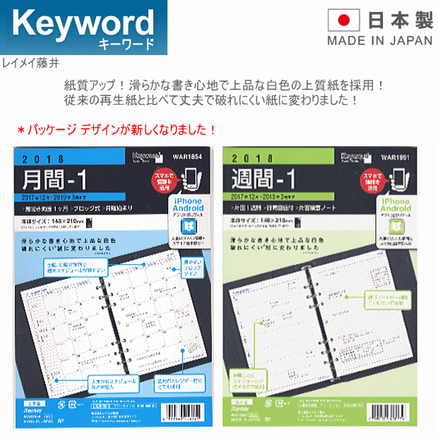 キーワードシステム手帳用 A5サイズリフィル 2020年版スケジュール 商品名 Keyward キーワードリフィル 2020年週間-4 品番 WAR2059(旧品番:WAR1959) サイズ 横148×縦210mm (A5サイズ、デスクサイズ 6穴) 入数 16ヶ月分 2019年12月〜2021年3月 仕様 見開き両面1週間・時間目盛付・縦型24時間対応 *iPhone対応アプリ「リフィルストッカー」対応品 メーカー 株式会社 レイメイ藤井 ※A5サイズのリフィルですサイズ違いには十分ご注意ください。
