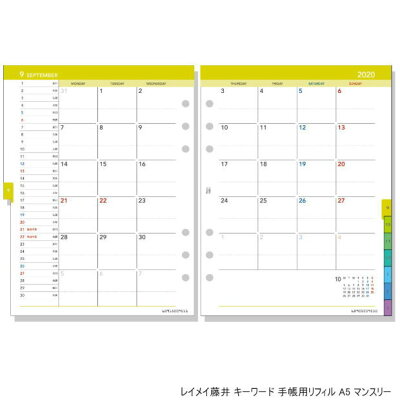 商品名 Keyward キーワードリフィル 2020年月間-4 品番 WAR2050 サイズ ※横154×縦210mm (A5サイズ、デスクサイズ 6穴) W180mm以下の手帳にセットするとリフィルがはみ出します。