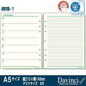 システム手帳リフィル 2020年 A5サイズ 週間-1 ダ・ヴィンチ DAR2001